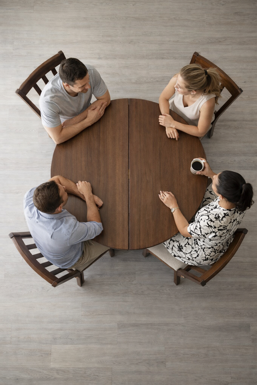 Sillas cómodas y mesa amplia. Ideal para reuniones y se siente estable.